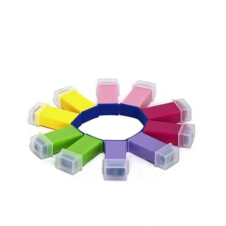 Multi color safety blood lancets set including yellow pink green red and purple square shape lancet